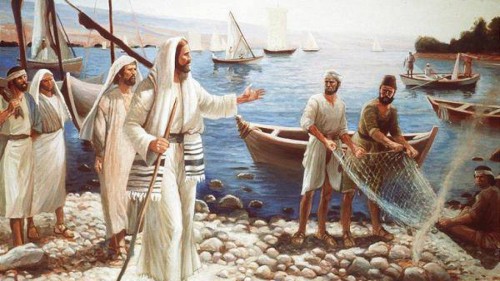 Mentre camminava lungo il mare di Galilea, vide due fratelli, Simone, chiamato Pietro, e Andrea suo fratello, che gettavano le reti in mare; erano infatti pescatori. E disse loro: «Venite dietro a me, vi farò pescatori di uomini». Ed essi subito lasciarono le reti e lo seguirono. Andando oltre, vide altri due fratelli, Giacomo, figlio di Zebedèo, e Giovanni suo fratello, che nella barca, insieme a Zebedeo loro padre, riparavano le loro reti, e li chiamò. Ed essi subito lasciarono la barca e il loro padre e lo seguirono.